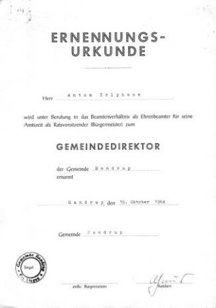 Ernennungsurkunden zum Gemeindedirektor